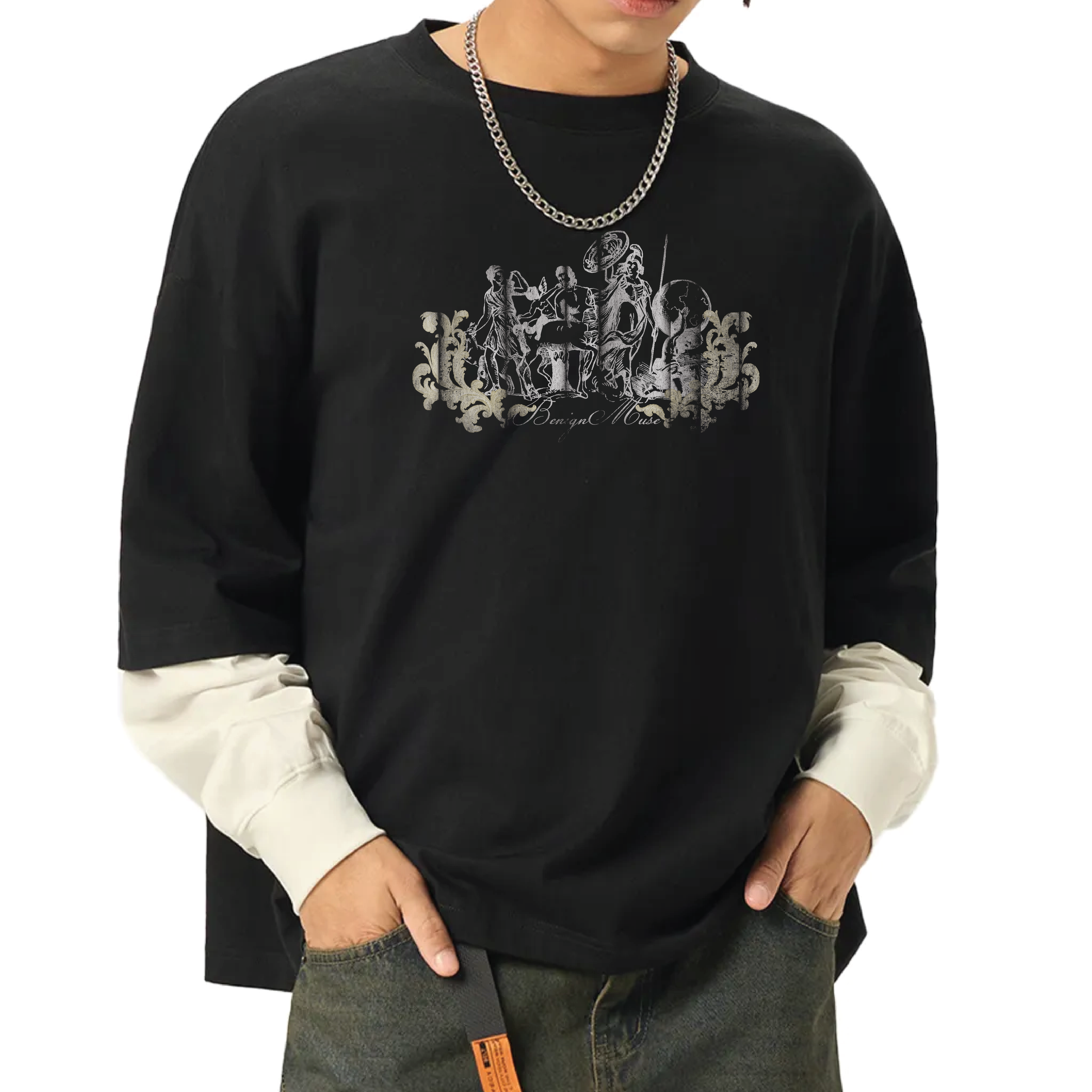 Boxy Half-Sleeve Raw-Edge T-Shirt